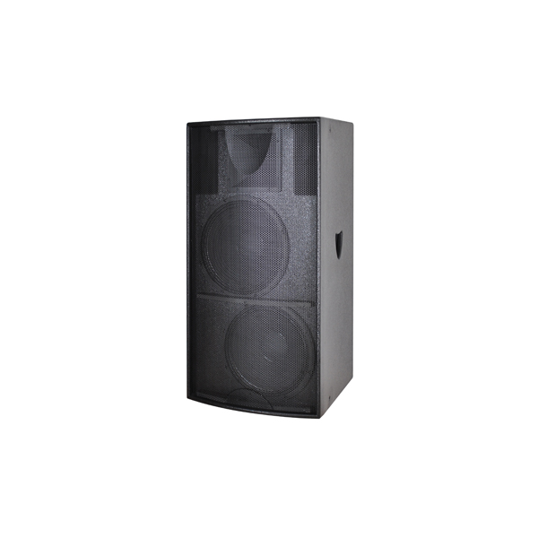 F215由兩個15"紙錐低音單元與一個51mm聚酯膜釹磁壓縮單元組成,低音單元音圈為75mm,鋁盆架。可用于大型擴聲系統中作延時補聲只用。提供9個M10吊掛點,用于固定安裝中吊掛和調節角度。箱體由18mm的中纖板構成,箱體表面為耐磨的黑色點紋防水油漆。后接線板兩個并聯的SPEAKON 4芯插座方便連接 ,黑色外覆透聲穿孔鐵網保護音箱單元。